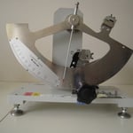 検査機にエアセルマットをセットし、振り子の先の衝撃球で、エアセルマットを突き破ります。