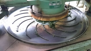 3. 揉捻:粗揉後の茶葉に錘をかけ、葉部や茎部の水分を均一にする工程