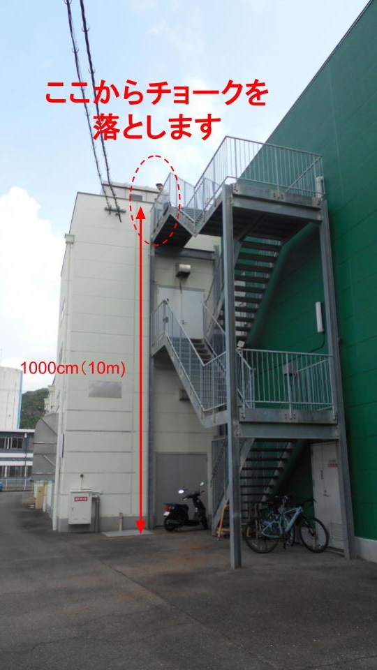 期待を込めて、いきなり200cmから落下させますが...、チョークは割れる気配すらない、まったくの無傷です。次に400cmから落下させますが、まだ割れません。
