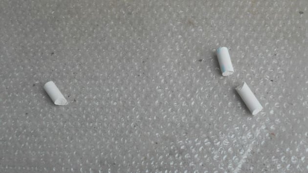 30cmの高さからチョークを落下させてもチョークは割れませんでしたが、高さ40cmから落とすと割れました。