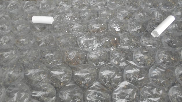 気泡緩衝材における気泡の種類の違いが緩衝能力にどのように影響するのか、わかりやすい形で比較するために、チョークを使った落下テストを実施しましたが、まさかこんなにわかりやすく違いが現れるとは予想外でした。
