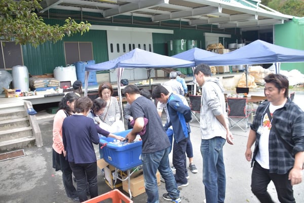 9時過ぎには、社員の方々が集まりだし、食材の準備・机椅子の準備・誘導の準備など各自持ち場について、せっせと準備を始めていきます。