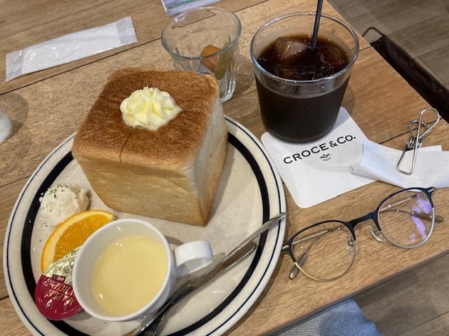 この店のウリは、何を差し置いても10cm角のサイコロ食パンモーニング!