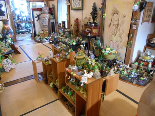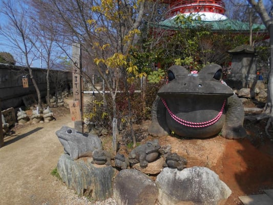 境内に並んだかえるの置物やオブジェは、約10,000体もあるそうです。