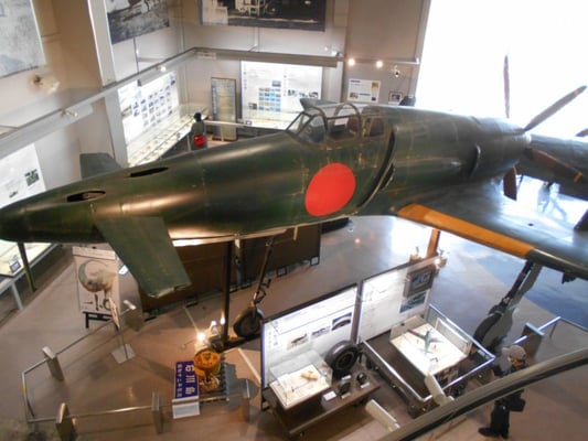終戦の1945年の6月に試作機が完成、8月に試作飛行を行いましたが、終戦を迎え、実際は使われなかった幻の戦闘機です。プロペラが後ろについている独特な形状で「異端の翼」と呼ばれていました。